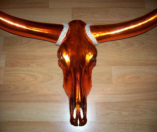 Mirror Methods was created specifically to put a shiny mirror like finish on parts that can not be plated. We can put this finish on metal parts too but we strive to do what "can't be done". We were requested to do a project relating to cow skulls and the results speak for themselves. Plating on non-metal items was not possible until recently developed technology. Now we can silver plate just about anything, leaving a brilliant mirror like finish. Our plating does not hide any surface imperfections and all parts are primed and sanded prior to plating. Plated items must be clear coated over and that clear coat can be tinted any color you desire. We are always looking for new and interesting projects and can be reached via the contact page.